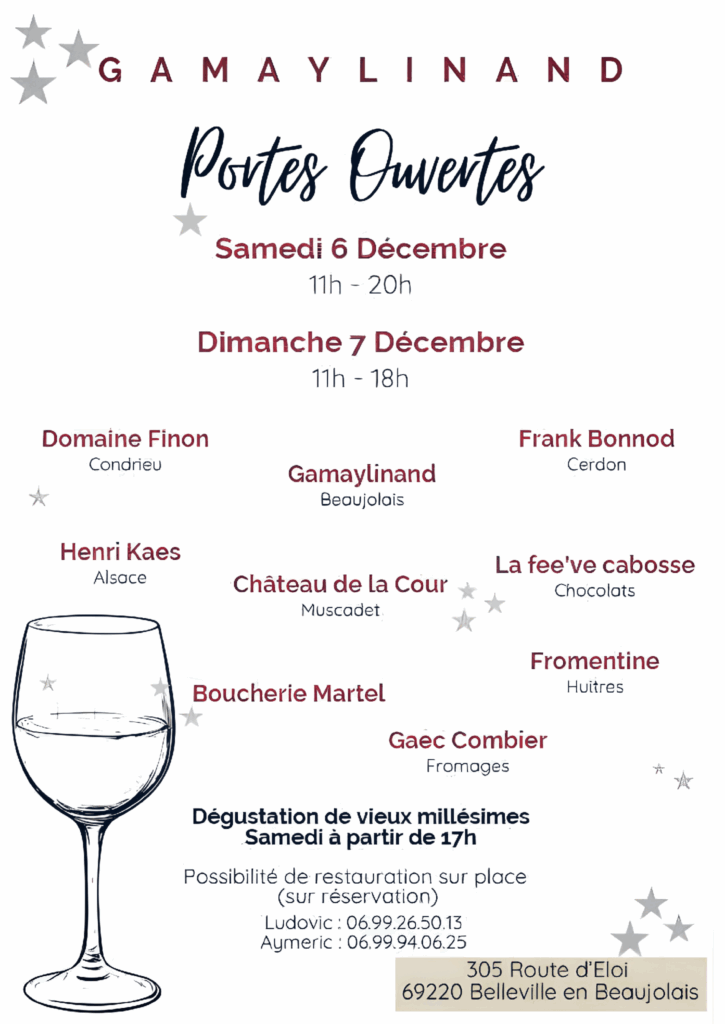 Comme chaque année, nous serons présents au Domaine Gamaylinand les 6 et 7 décembre au 305 Route d’Eloi 69220 Belleville-en-Beaujolais.